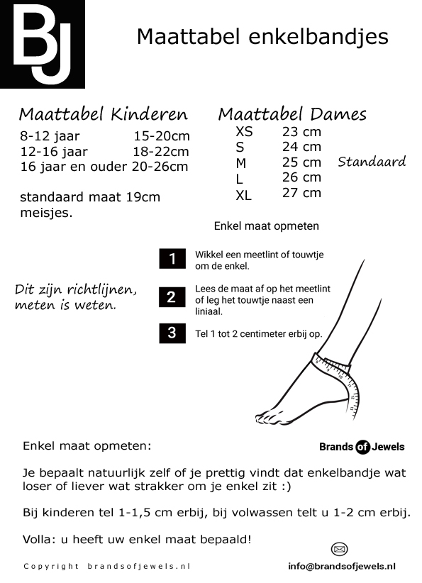 Mocht u moeder dochter enkelbandjes willen dan is dat ook mogelijk zie maattabel enkelbandjes hoe de maat te meten.